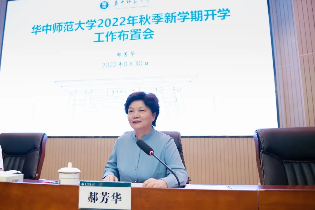 郝芳华指出,新学期,学校将坚持以习近平新时代中国特色社会主义思想为指导,全面贯彻党的十九大和十九届历次全会精神以及党的二十大精神,围绕全面落实学校第十二次党代会决策部署和“十四五”事业发展规划,攻坚克难、高质量发展,以实际行动迎接党的二十大胜利召开,向120周年校庆献礼。围绕这一工作总体思路,她从迎接和学习宣传贯彻党的二十大、坚持和加强党的全面领导、加快推进校庆筹备工作、坚持打造高质量强师体系、扎实推进“双一流”建设、持续构筑人才聚集高地、构建全面发展育人新体系、提升有组织科研能力、推进“数字华师”建设、全面提升国际交往水平、显著增强社会服务能力、提升学校内部治理能力、建设美丽幸福校园十三个方面,对学校2022年秋季新学期重点工作进行了部署。她强调,全校上下要按照学校第十二次党代会制定的目标和“十四五”规划的路线,继续发扬“砥砺前行、攻坚克难、久久为功、追求卓越”的精神,坚定信心、鼓足干劲,将新学期各项工作抓牢、抓实、抓好。