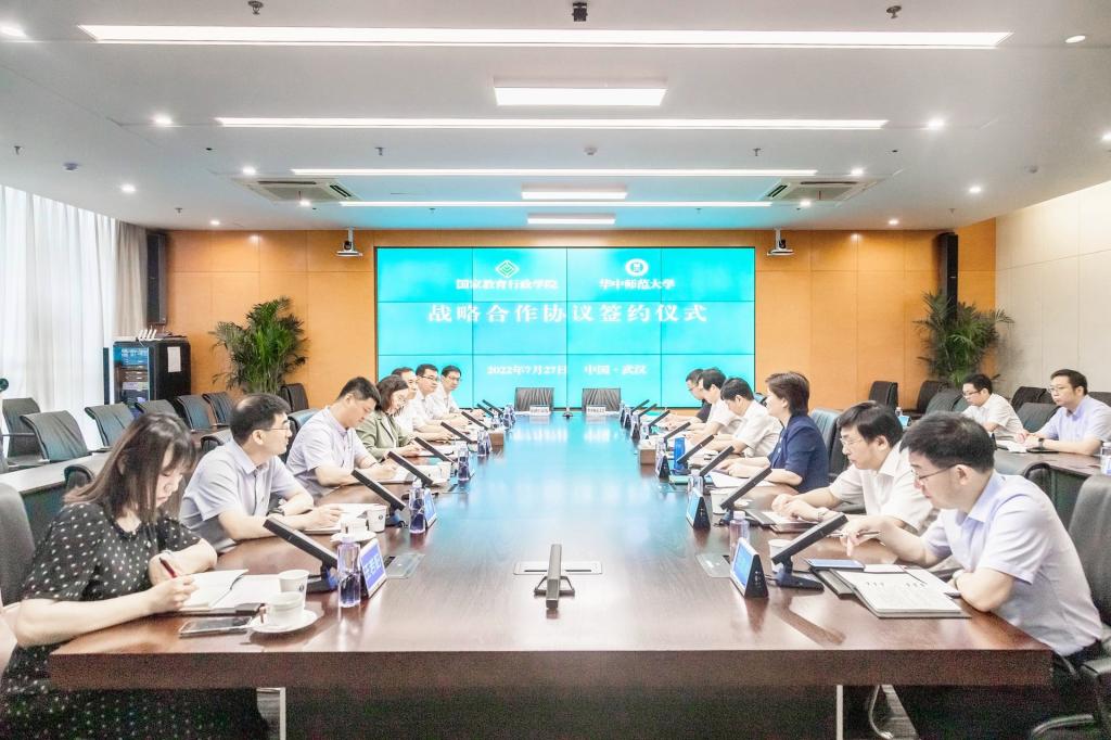 签约前,侯慧君一行参观了南湖E站、智慧教室、南湖校区图书馆和教育大数据应用技术国家工程研究中心。国家教育行政学院党政办、教务部兼远程培训部、信息技术部、进修二部及我校学校办、人工智能教育学部、科技处、信息化办、培训中心、国内合作与培训管理处有关负责人参加了签约仪式。