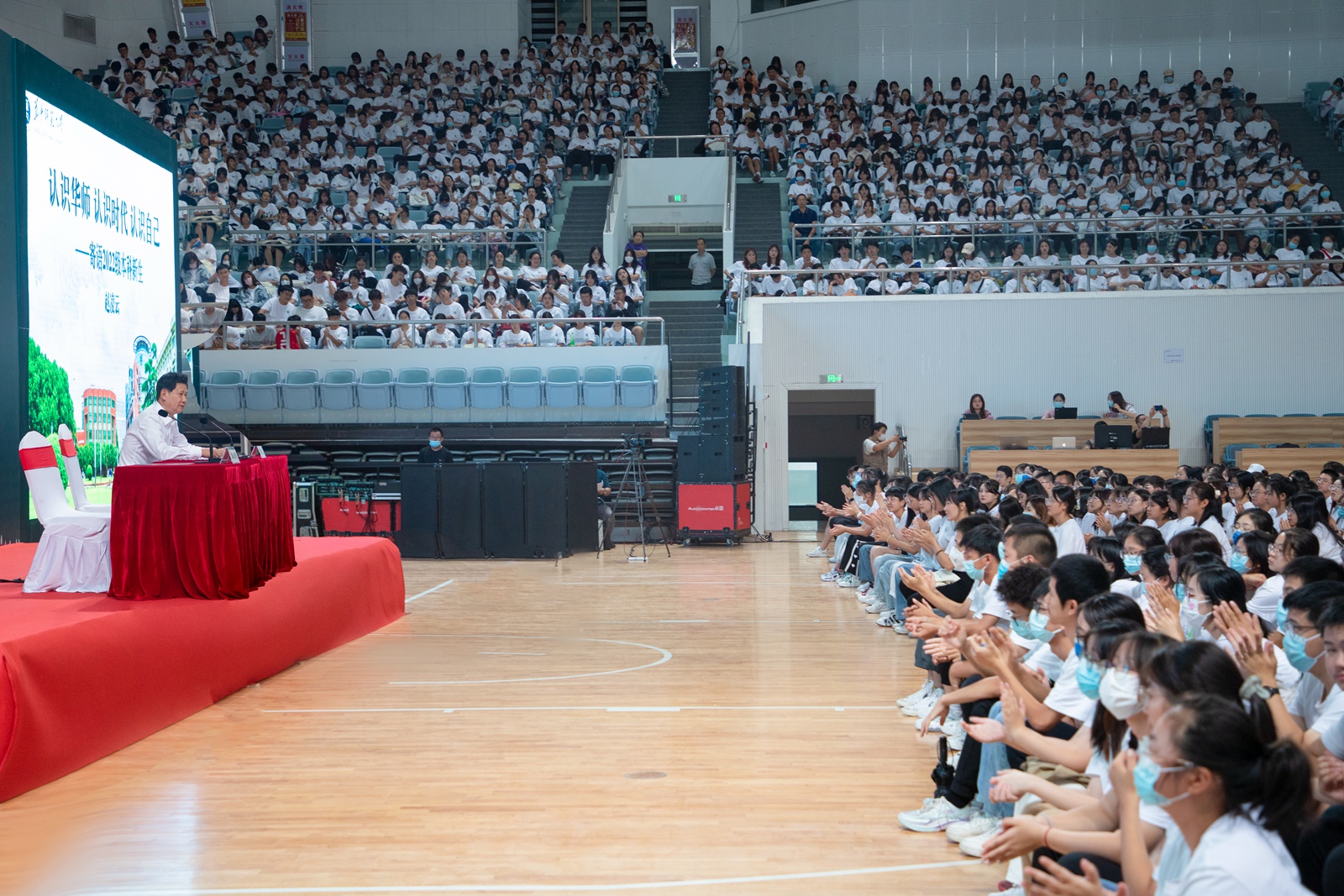 围绕《认识华师 认识时代 认识自己》的主题,赵凌云以校史为主线,讲述了青年楷模恽代英、国学大师钱基博、历史学家章开沅等前辈校友的故事,介绍了矢志不渝教育报国、红色血脉源远流长、大师云集人才辈出、精神丰盈境界高远的办学特点,鼓励大家“传承华师精神,传承华师文化,传承华师担当,传承华师作为,从中汲取前进的力量,跑出这一棒的精彩”。