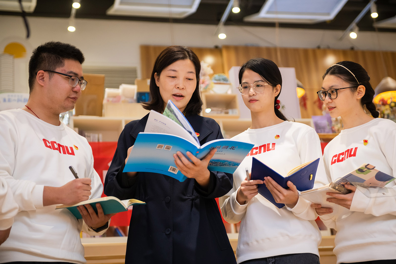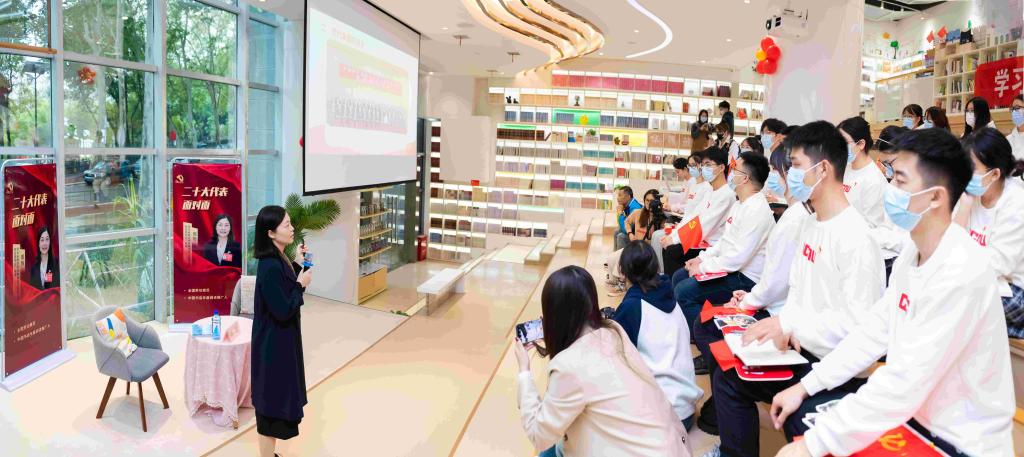 华大在线讯(记者 洪臻祎 见习记者 史雅丹)10月26日,党的二十大代表,全国劳动模范,中国书店年度阅读推广人,湖北省新华书店有限公司武汉市分公司党支部书记、经理周怡应邀来到倍阅利群书社,与我校“华小诗”宣讲团面对面宣讲党的二十大精神,分享参会心得体会,指导宣讲团成员开展宣讲工作。