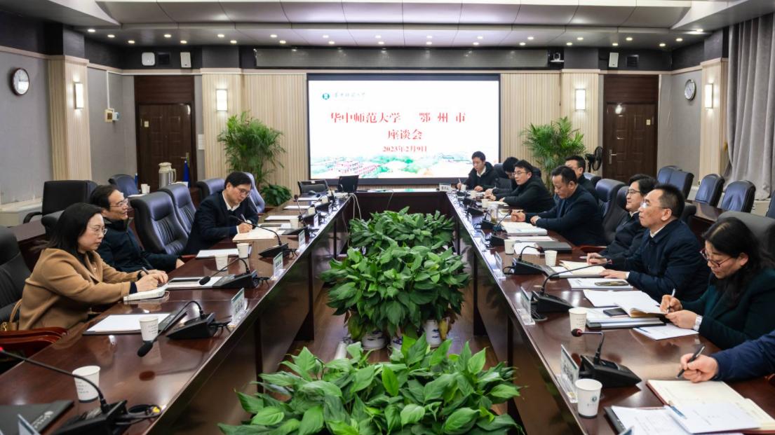 会上,任友洲介绍了新校区建设有关情况,鄂州市教育局有关负责同志介绍了鄂州市基础教育发展等情况。双方相关单位负责人围绕深化校地合作展开了探讨和交流。