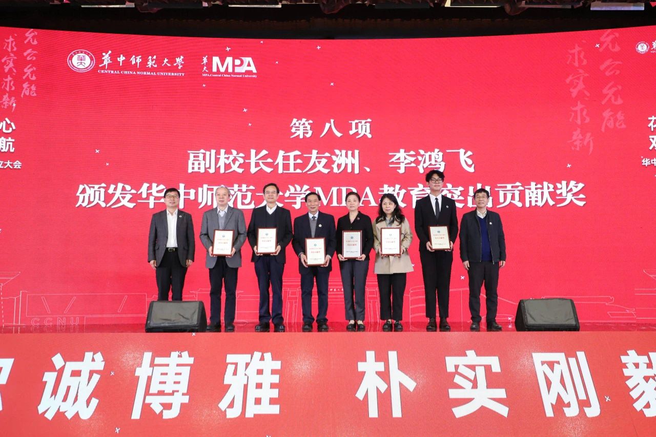 任友洲、李鸿飞为朱立言、蔡旭、徐勇、范军、张立荣、刘筱红颁发开云网页版登录入口MPA教育突出贡献奖,感谢他们为学校MPA专业学位教育作出贡献。
