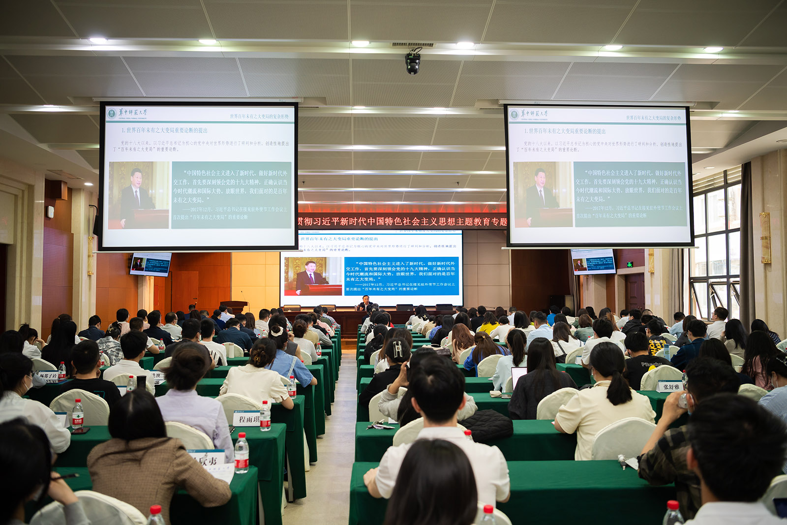“我们处于一个日新月异、快速发展的时代。作为华师的新时代青年,必须知晓所处的环境,认清当下的局势,才能让我们在未来的发展中抢占先机,让自己的人生更加出彩。”夏立新从“努力认清世界百年未有之大变局的复杂形势”和“自觉肩负社会主义现代化强国建设的时代使命”两个层面,阐释了他对“百年变局下的强国建设之问”的深入思考,号召大家要深入了解世界百年未有之大变局中的中华民族伟大复兴战略全局,不断增强大局观、民族观、世界观,深入学习马克思主义理论,掌握科学世界观与方法论;深入领会党的二十大精神,厚植爱国兴国强国情怀;深入明确所处时代方位,不断增强民族复兴责任使命。