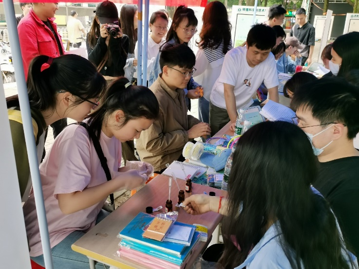 活动现场氛围热烈。绿色农药创制、农药安全性、农药残留等主题展板吸引行人驻足观看。农残快速检测体验环节引得过路师生争先体验。工作人员按照科学规范的流程,指导师生们现场体验蔬果类农产品的农残检测。“绿色食品”“农药残留”等热点话题被频频问及,实验室的博士及硕士研究生们轮番上阵,用扎实的专业知识为师生们答疑解惑。