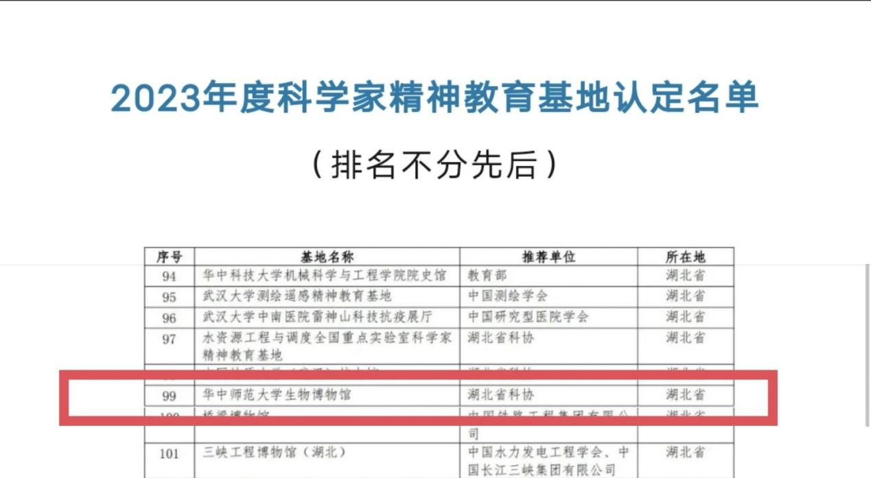 华大在线讯(通讯员 邓淑文 黄悦)5月30日,中国科协、教育部、科技部、国务院国资委、中国科学院、中国工程院、国防科工局联合发布2023年度科学家精神教育基地认定名单。经过初评、终评和公示等程序,开云网页版登录入口生物博物馆成功入选2023年度科学家精神教育基地。