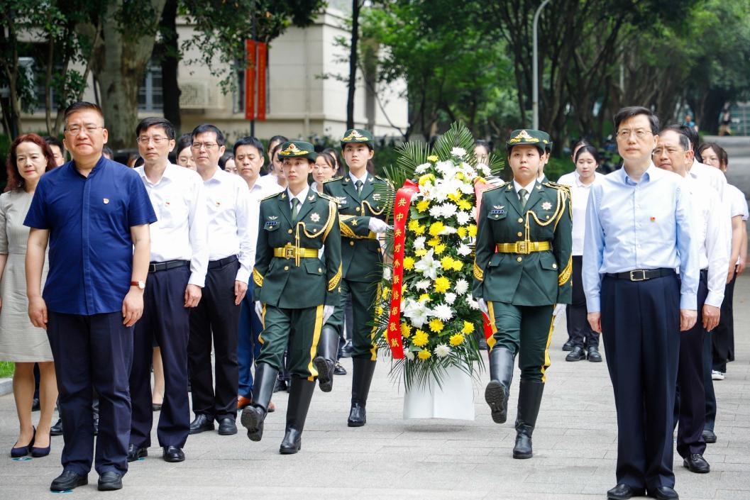 郭业洲、诸葛宇杰一行来到恽代英广场,瞻仰恽代英同志雕像并敬献鲜花,向革命先烈表达深切哀思,致以崇高敬意。