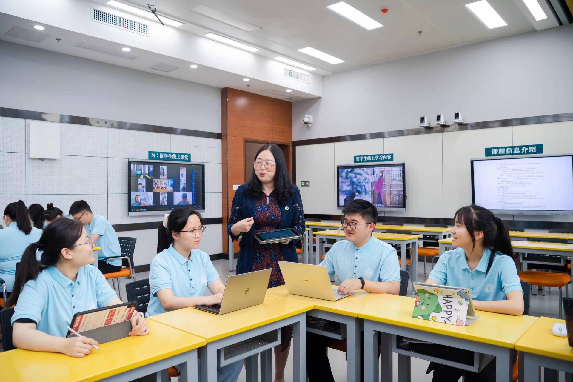 数字化助“服”,主动作为,彰显担当。从心理援助热线平台入选中国“十大教育服务类数字化转型”成功案例、参与教育信息化2.0行动计划等文件编制,到建成国家智能社会治理实验基地(教育)、宁夏人工智能教育研究院等平台,再到开展东中西部地区中小学教师数字素养测评、助力“互联网+教育”国家级示范区、国家智慧教育示范区建设,学校以国家需求为导向,为全面推进教育数字化贡献华师力量。