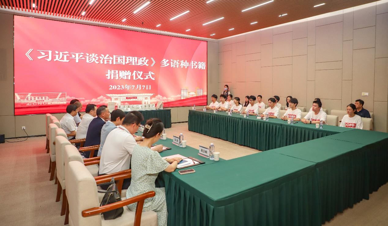 华大在线讯(记者 魏晓暄)7月7日,《习近平谈治国理政》多语种书籍捐赠仪式在文科楼(一期)一楼会议室举行。校党委书记夏立新出席捐赠仪式。仪式由校长助理冯淑霞主持。