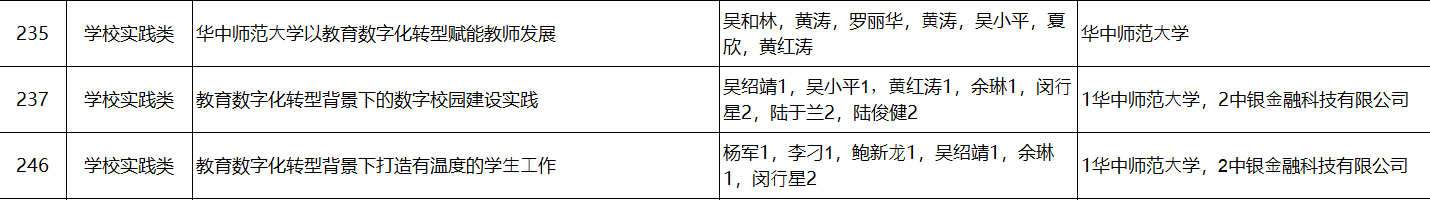 华大在线讯(通讯员 余琳)日前,在2023年全球智慧教育大会上,教育部“智慧教育示范区”创建项目专家组秘书处公布了《2023年度智慧教育优秀案例名单》,我校3项案例入选,入选数居高校第一。这不仅是对华师在智慧教育领域成果的肯定,也是对学校长期以来致力于推动教育数字化转型工作的认可。