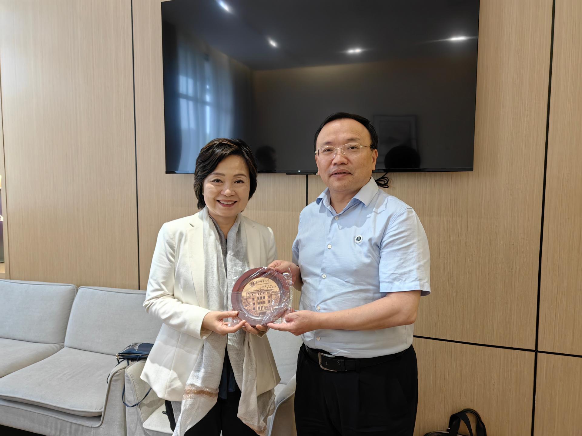 蔡若莲感谢学校的精心安排及长期支持,高度赞扬了我校举办的两期香港新入职教师培训班。她表示,当下香港进入由治及兴新阶段,要进一步加强与内地紧密合作,引领香港年轻一代厚植家国情怀、锤炼过硬本领,更好融入国家发展大局。希望未来双方继续推进各领域的深入合作,为国家培养更多的栋梁之才。