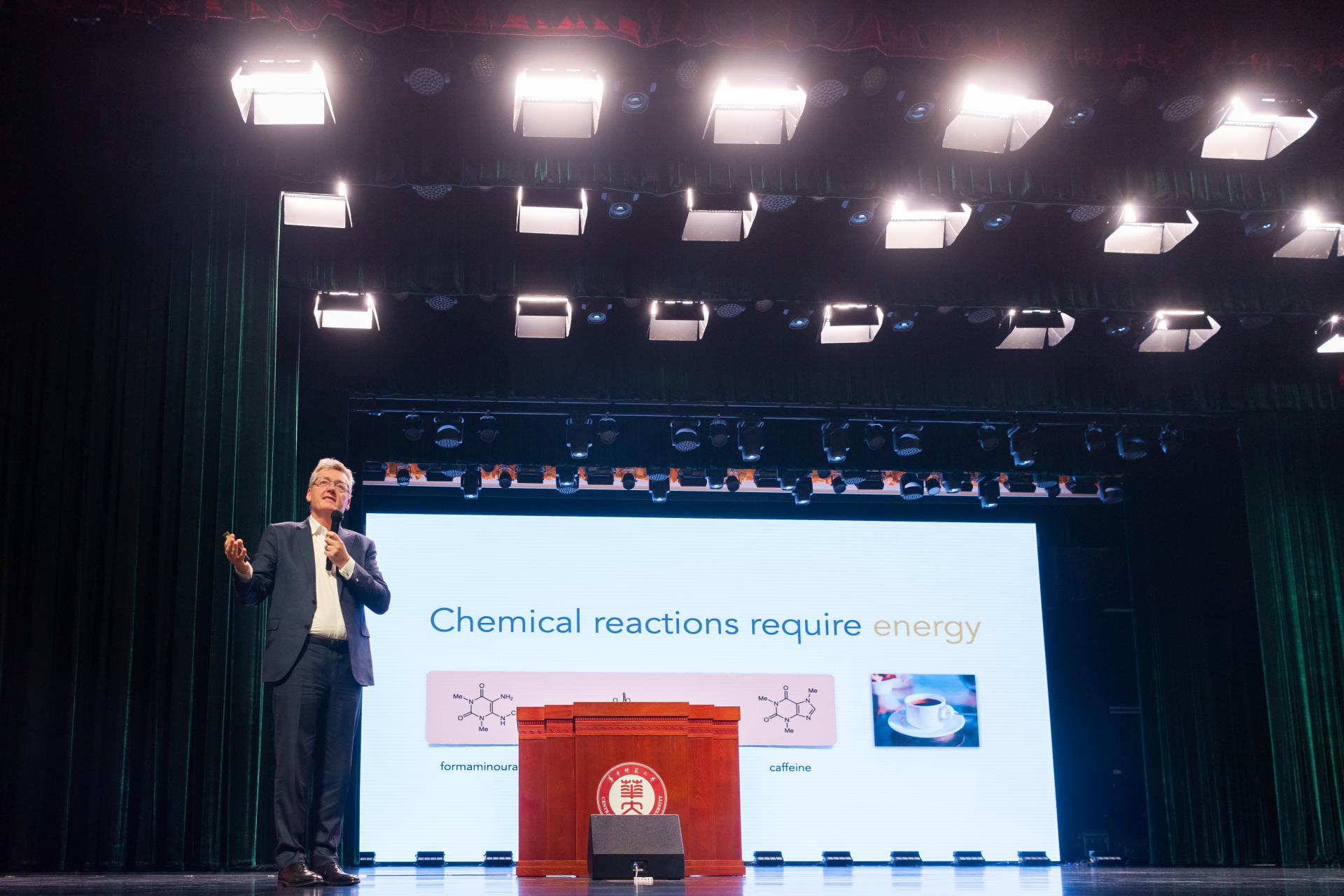 在报告中,戴维·麦克米伦教授用诙谐幽默的语言讲述了自己儿时的成长经历、学习生涯、科研历程和研究进展,饶有兴致地与大家分享了得知自己获得诺贝尔奖时的心情,他表示,“瑞典皇家科学院通知我获奖的凌晨,我甚至因为对方拼错了我的名字而认为是学生的‘恶作剧’,直到我的伙伴Benjamin List发来消息告诉我这一切都是真的。”大家都被戴维·麦克米伦教授的风趣幽默吸引,现场氛围轻松活泼。