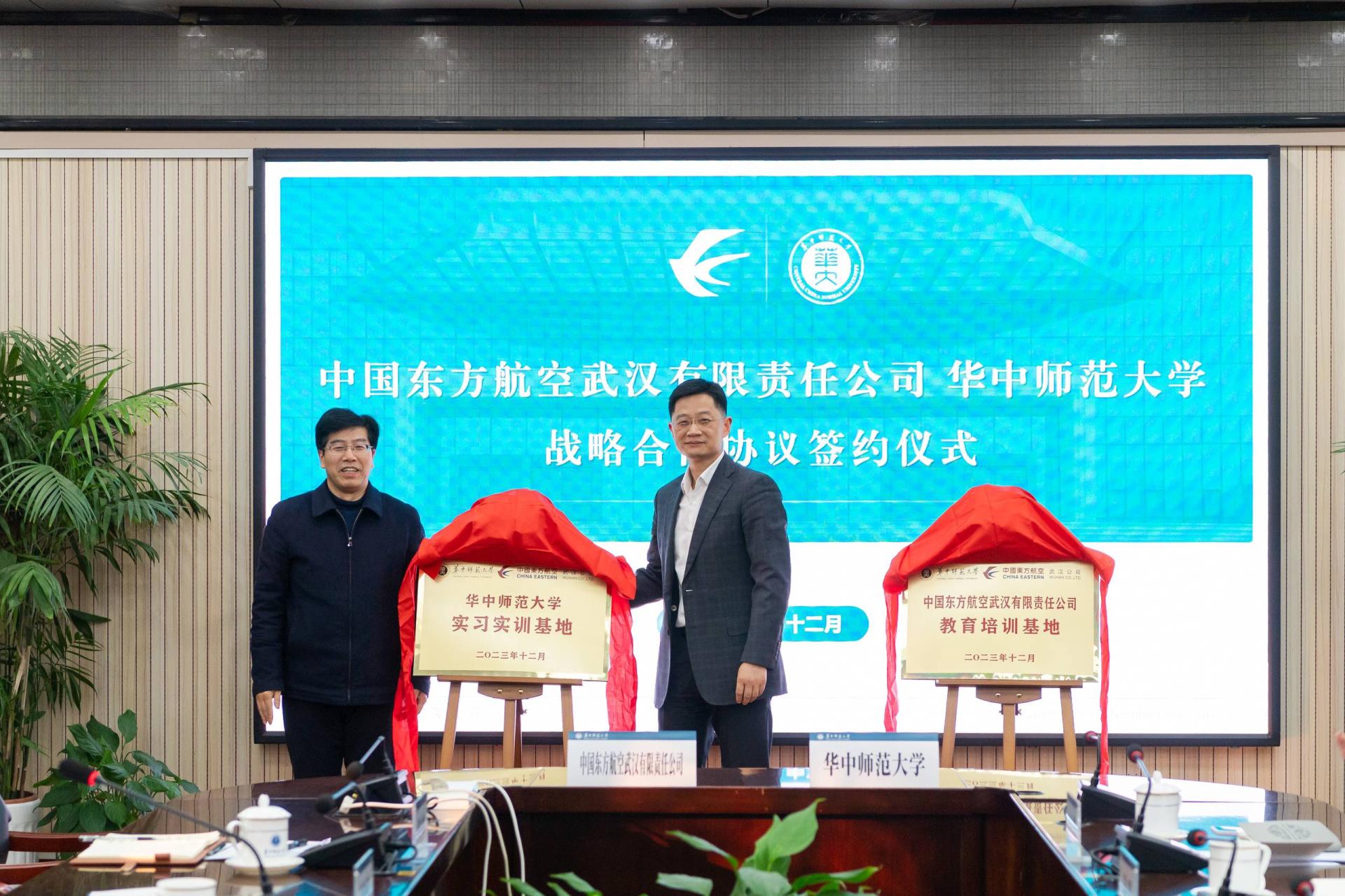 李良斌与彭双阶代表双方单位为中国东方航空武汉有限责任公司教育培训基地、开云网页版登录入口实习实训基地揭牌。