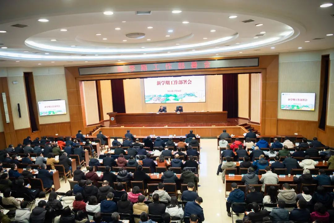 校长彭双阶向全体教职工致以新春问候,向寒假期间坚守工作岗位、奋战在一线的教职员工表示衷心感谢。2024年是实现学校“十四五”规划目标任务和学校第十二次党代会战略部署的关键之年。彭双阶表示,学校要坚持以习近平新时代中国特色社会主义思想为指导,深入学习贯彻党的二十大精神和习近平总书记关于教育的重要论述,以高质量完成巡视整改和本科教育教学审核评估为工作主线,以全面提高人才培养质量和学科建设水平为主攻方向,以落实教育强国建设规划纲要为关键抓手,以深化综合改革为发展动力,加快推动教育数字化转型,加快落实学校“十四五”规划和第十二次党代会战略部署,加快推进学校治理体系和治理能力现代化,以更加优异的办学成绩向新中国成立75周年献礼。