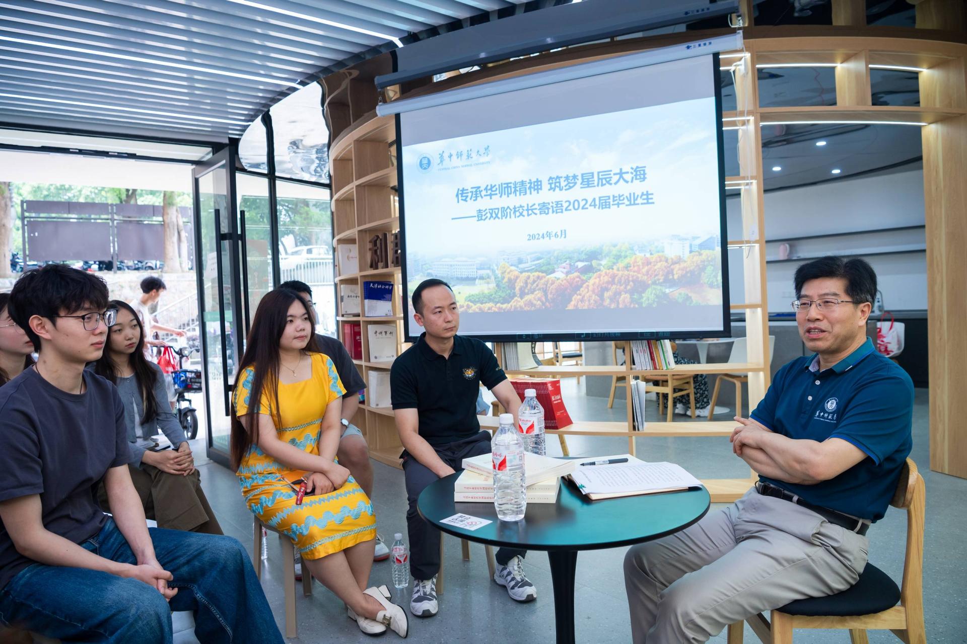 彭双阶一行前往国交4栋学生宿舍看望毕业生,并与教育学院、文学院、历史文化学院、物理科学与技术学院、国际文化交流学院等的毕业生代表座谈交流,为他们上了一堂生动的毕业思政课。彭双阶希望大家能够保持追求理想的初心,坚守道德底线,牢记“忠诚博雅,朴实刚毅”的华师精神,做一个纯粹的人;不断拓宽眼界和视野,跟上时代前进的步伐,既要读好“有字之书”,获取知识的滋养,又要读好“无字之书”,在社会实践中提升能力;敢于拥抱时代的挑战,争做走在时代前列的佼佼者;积极培养兴趣爱好,学会在繁忙的工作中寻找生活的乐趣。无论今后身在何方,母校永远是大家的坚强后盾和精神家园。
