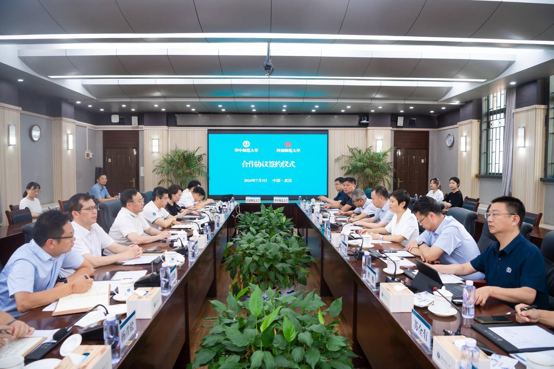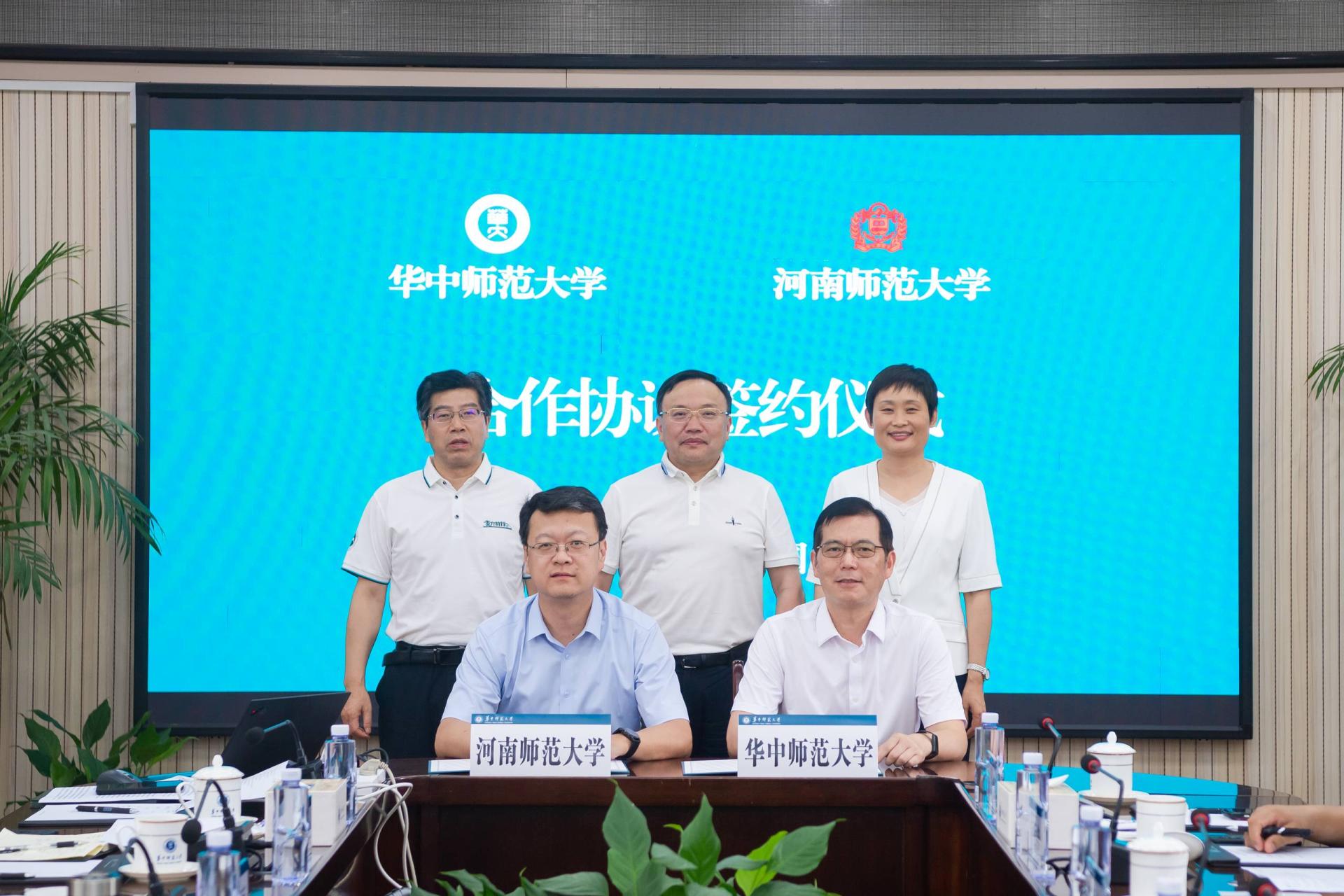 华大在线讯(记者 郝日虹)7月3日,河南师范大学党委书记、校长冯淑霞,副校长苗雨等一行来访,与校党委书记夏立新、校长彭双阶、校党委副书记陈迪明等在行政楼一楼会议室座谈交流,并与我校签署合作协议。座谈会由彭双阶主持。