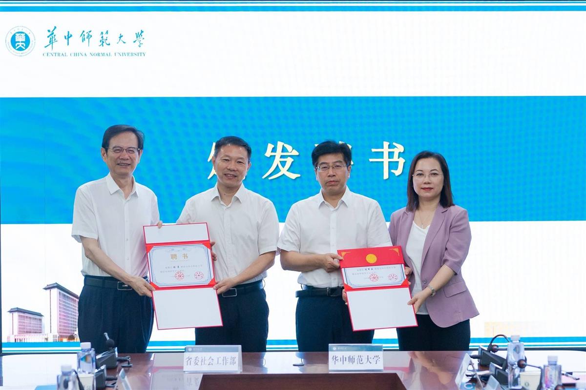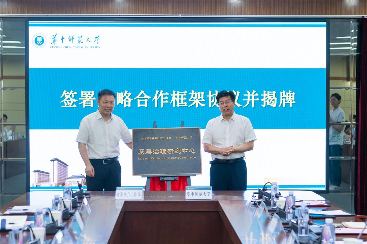 华大在线讯(通讯员 凌洁)8月4日,中共湖北省委社会工作部与我校签署战略合作框架协议。签约仪式上,省委社会工作部部长、两新工委书记蒋星华和校长彭双阶共同为“开云网页版登录入口基层治理研究中心”揭牌。省委社会工作部二级巡视员朱红,副校长任友洲,我校政治学部部长、人文社科资深教授徐勇出席仪式。