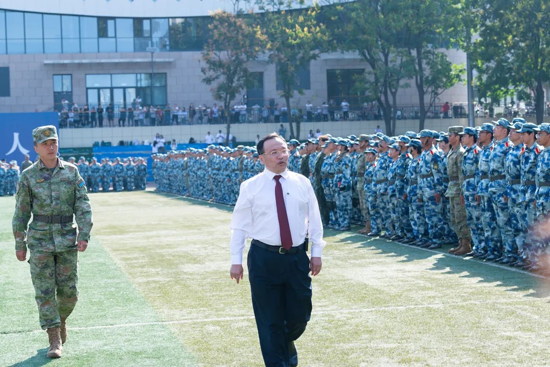 开学典礼后,2024级本科新生军训总结汇报表演。夏立新在军训团团长的陪同下对各学院方阵进行检阅。各方阵队列以昂扬饱满的状态展现了新华师人锐意进取的精神面貌。