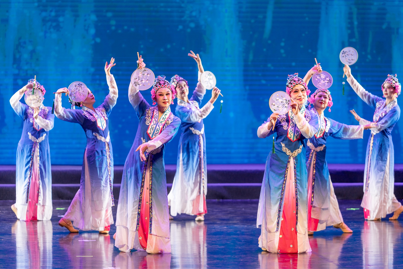 本次文艺汇演在合唱《中国朝前走》和《祝福祖国》中拉开帷幕。老同志们身着红色盛装,用嘹亮的歌声赞颂新中国。管乐演奏《歌唱祖国》铿锵而激昂,萨克斯乐手们踏着整齐划一的步伐,在节奏鲜明的旋律中变换着队列,奏响爱国之声。走秀节目《渔家伊人》通过生动还原的情景设计,动感十足的队形设计,把水乡人文中独有的意境呈现给观众。原创舞蹈节目《我的祖国》中,舞者的裙摆好似红旗随风翩然,把爱国情怀融入旋转的舞步中。歌舞朗诵《读中国》将音乐、朗诵和舞蹈巧妙结合,用浪漫的文字和深情的舞蹈生动呈现中国悠久的历史与中华传统文化的深厚底蕴。