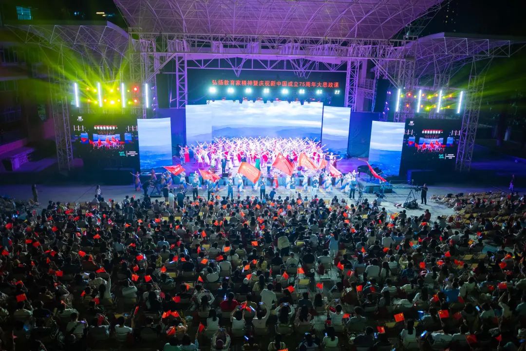 华大在线讯(记者 华轩)“从千湖之省,到万瀑之乡,攀援高山,跋涉深涧;从荆楚大地,到八桂田园,踏步荆棘,蒙犯霜露……”10月10日,“山海有界,青绿无垠——弘扬教育家精神暨庆祝新中国成立75周年”大思政课在露天电影场举行。来自教育部师范教育协同提质计划开云网页版登录入口组团高校的3000余名师生现场同上一堂沉浸式大思政课,共立“教育强国,师范有为”的铮铮誓言。