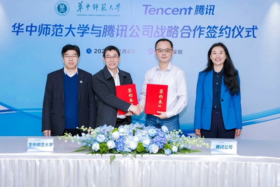 12月8日下午,我校与深圳市腾讯计算机系统有限公司在深圳腾讯滨海大厦正式签订战略合作协议。校长彭双阶,副校长李鸿飞,腾讯云副总裁、腾讯教育负责人石梅、腾讯基础及高等教育总经理饶臻以及校企相关部门负责人参加签约仪式。