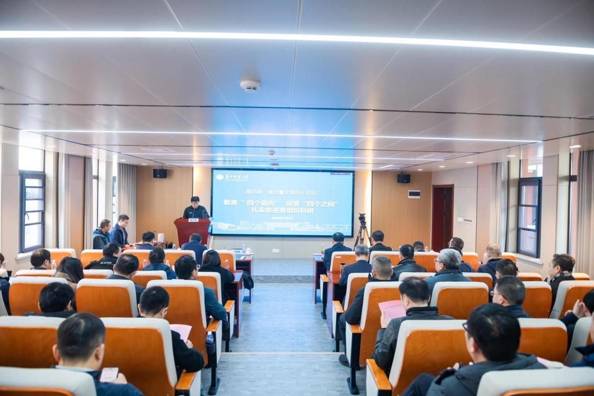 华大在线讯(通讯员 黄玉新 罗兰)1月3日,第四期“高质量发展院长论坛”在武汉光化学技术研究院二楼报告厅举行。论坛聚焦“四个面向”,回答“四个之问”,探讨如何扎实推进有组织科研。校党委书记夏立新,校长彭双阶,副校长任友洲、李鸿飞,校党委副书记、纪委书记刘继文,副校长刘三女牙,各学院院长、部分学院党委书记以及相关职能部门主要负责人参加论坛。论坛由彭双阶主持。