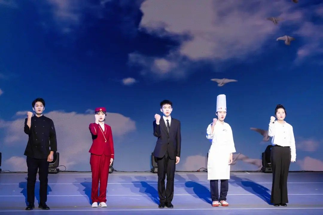 来自武汉职业技术大学的师生们以“‘一带一路’与推动构建人类命运共同体”为主题进行了展示,期待“在中国与世界的联系中找到专业契合点,为推动世界和平与繁荣贡献青春力量”。