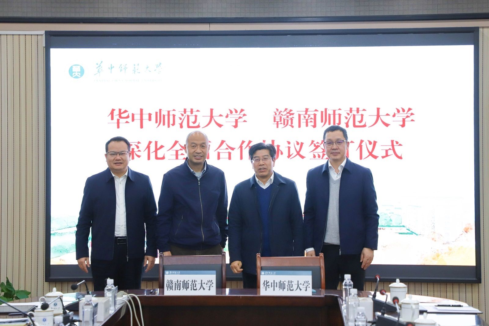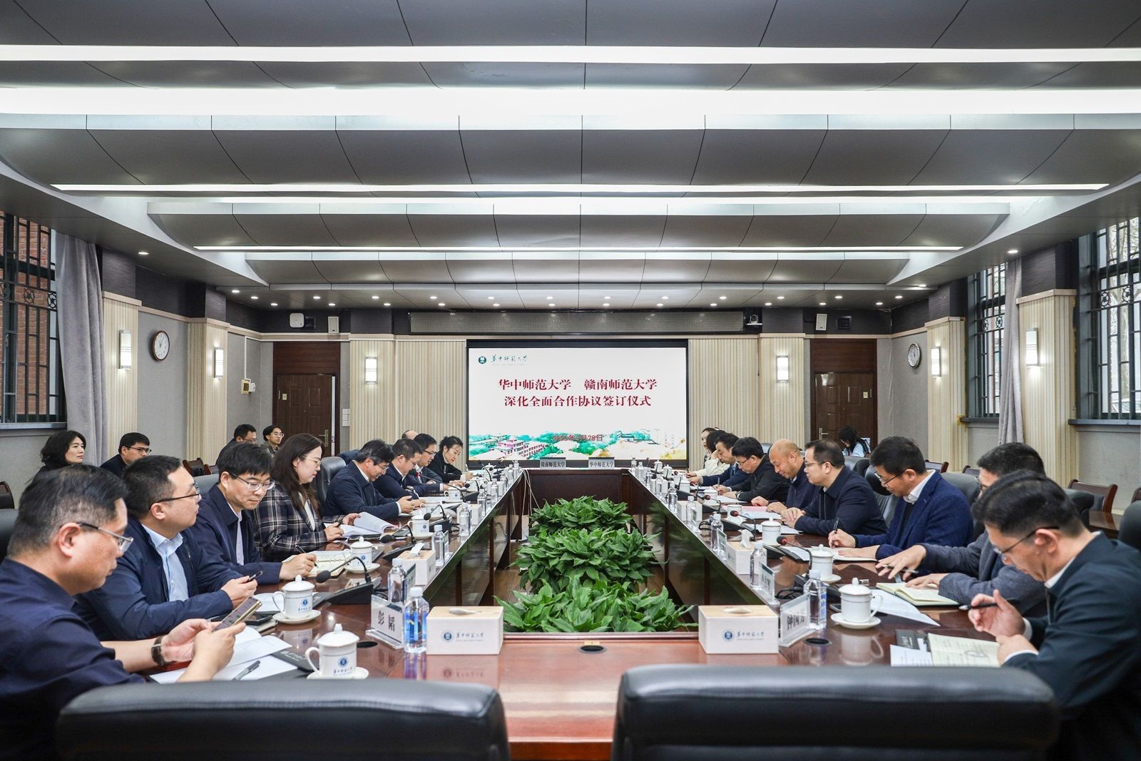 华大在线讯(通讯员 程浩)3月28日,赣南师范大学党委副书记、校长陈义旺,副校长肖笃森一行来校访问交流,与校长彭双阶、副校长刘三女牙等在行政楼一楼会议室座谈。会上,我校与赣南师范大学签署深化全面合作协议。