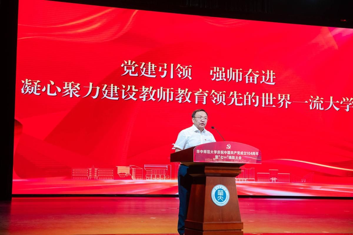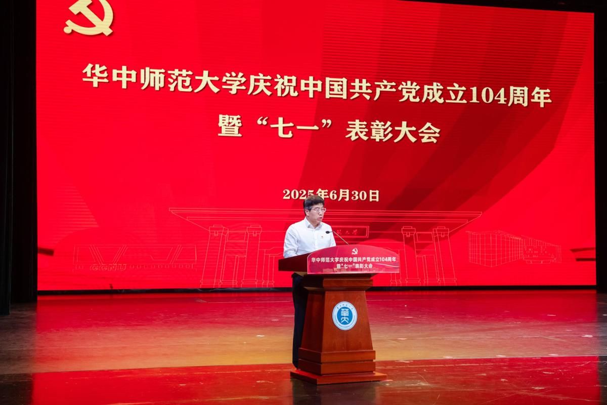 华大在线讯(通讯员 谢定一 胡羽)6月30日,我校庆祝中国共产党成立104周年暨“七一”表彰大会在学校大礼堂举行。教育部直属高校党建工作联络员、中南财经政法大学原党委副书记齐文远出席,全体校领导、全体中层领导干部、全体党支部书记、全体受表彰对象、“光荣在党50年”纪念章获得者代表参加会议,校长彭双阶主持会议。