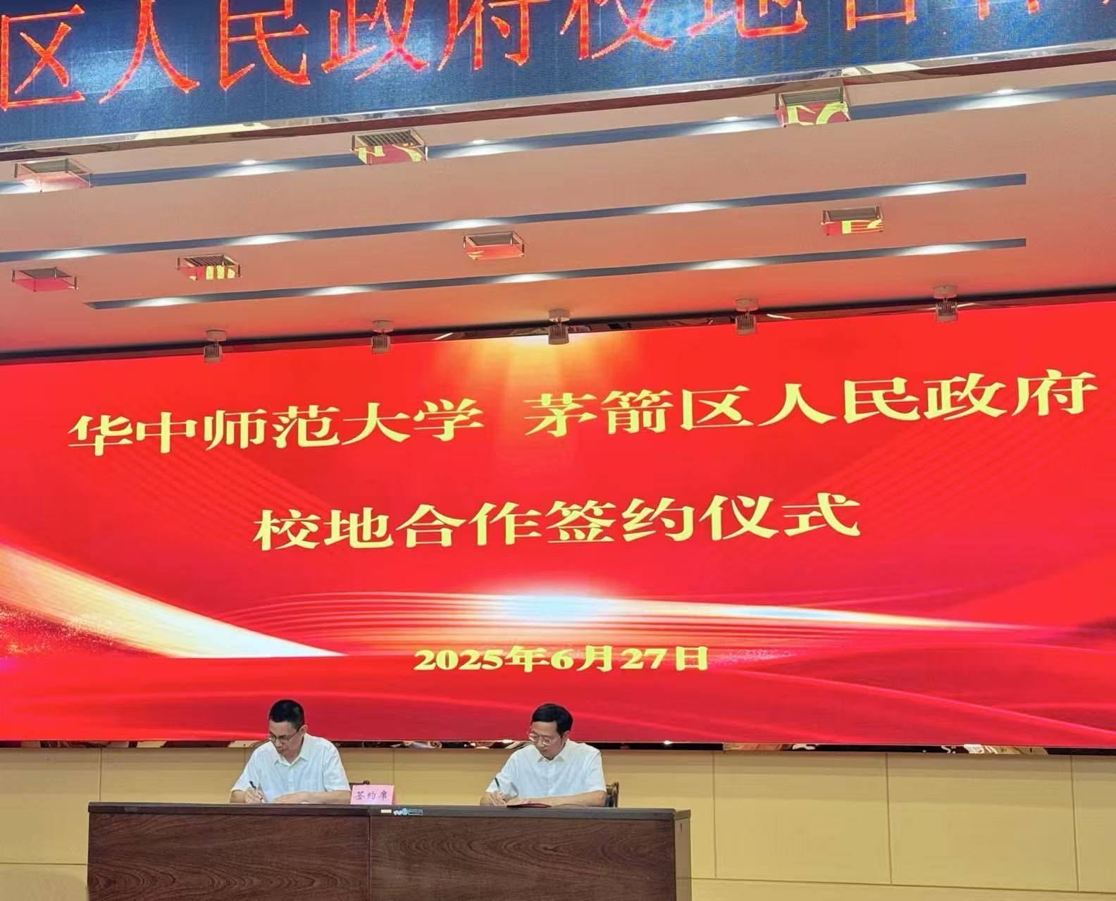 华大在线讯(通讯员 冯祖欣)6月27日,我校与十堰市茅箭区人民政府校地合作座谈会举行,签署校地合作协议,共同擘画人才共育、发展共谋的新篇章。副校长李鸿飞,十堰市茅箭区委书记李琴,区委副书记、区长何垚辰,区人大常委会主任金菊,区委常委、组织部部长李炎涛,副区长冉瑶函出席座谈会,以及我校社会学院党政班子和师生代表参加。