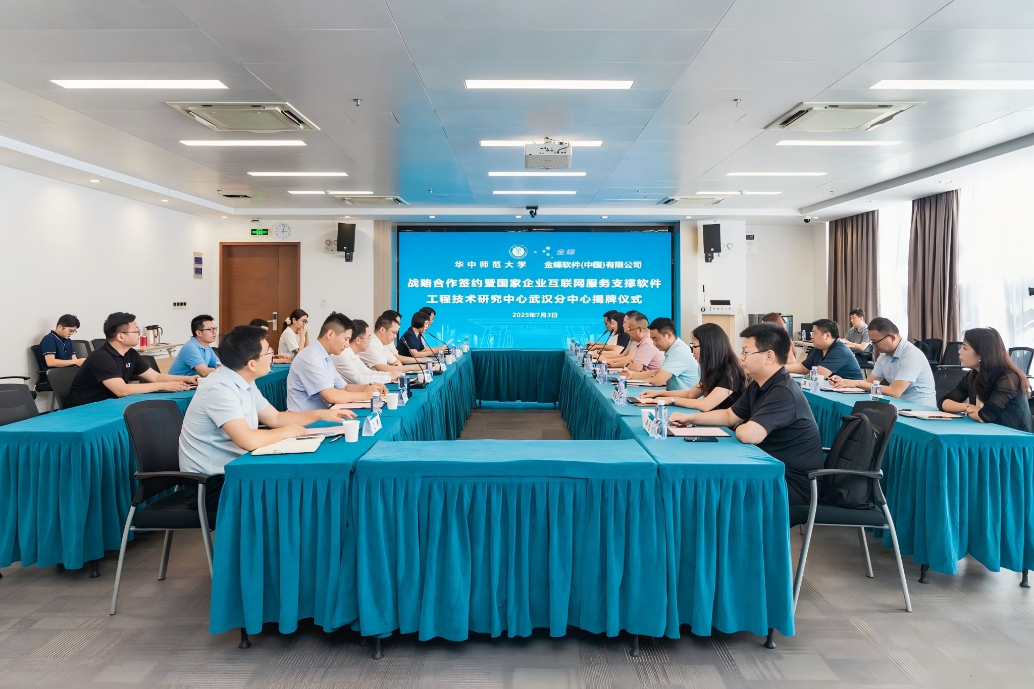 华大在线讯(通讯员 马于涛)7月3日,我校与金蝶软件(中国)有限公司签署战略合作协议。金蝶软件(中国)有限公司副总裁林法成、培训教育事业部总经理陈跃、湖北分公司总经理陈慧蛟、经营中心政企与工业互联网业务部总监赵亚妮,副校长刘三女牙以及科技处、计算机学院、经济与工商管理学院等相关单位负责人出席签约仪式。